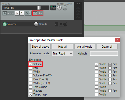Подскажите,возможно ли в Reaper повесить автоматизацию громкости на мастере?