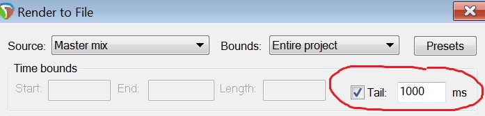 галки там нет, воспроизводил файл в разных проигрывателях, результат - 31 секунда, также смотрел свойства самого файла (правой кнопкой мыши), то есть похоже все же дело в рендеринге Рипера. Быть может где-то спрятаны настройки, которые позволяют округлять числа при рендеринге=(