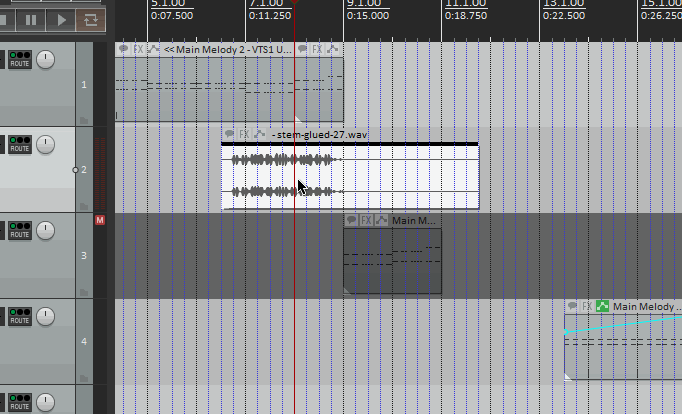 Ещё вариант для копирования группы айтемов с разных дорожек (например, отредактировали бэк-вокал припева и скопировали в другой) - выделяете нужные айтемы, ставите курсор туда, куда они должны быть скопированы и применяете следующий кастом