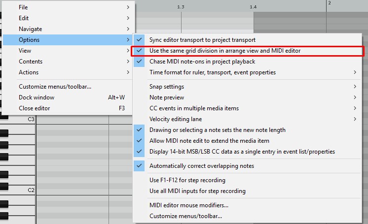 В миди-эдиторе настройки (такие, как Key Snap или размер сетки) выставляются для каждого конкретного миди-айтема. Можно ли сделать так, чтобы одна настройка распространялась на все миди-айтемы в проекте?