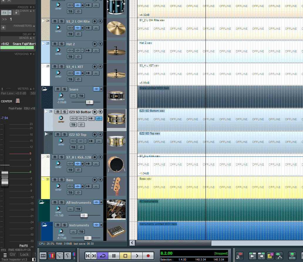 Reaper даёт огромные возможности, но право на ошибку в нём - минимальное и трудно предсказуемое в такой ситуации - не понять, откуда это "прилетело"?:(