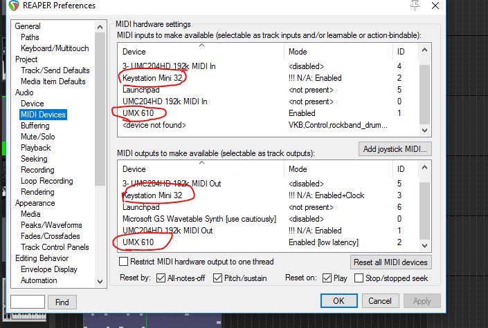 Нам мой взгляд, единствнное что не удобно в Рипере. Так это организация миди. А точнее устройств. Когда сделал пустую дорожку с вст синтом это еще ладно. А после надо добавить миди клаву свою. Чтобы звучала миди клава, надо сначало нажать красную кнопку запись, потом включить значек мониторинг, а уж после из списка на дорожке выбрать свою миди клаву. И так каждый раз, когда делаешь новую миди дорожку, проводишь эти манипуляции.