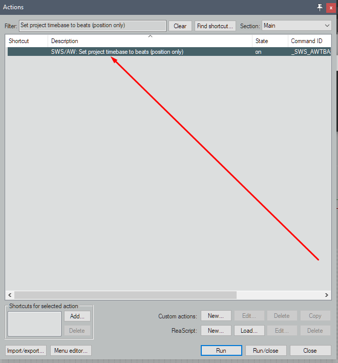 Экшен SWS/AW: Set project timebase to beats (position only) у меня не задействован.