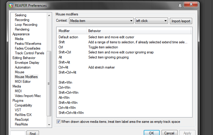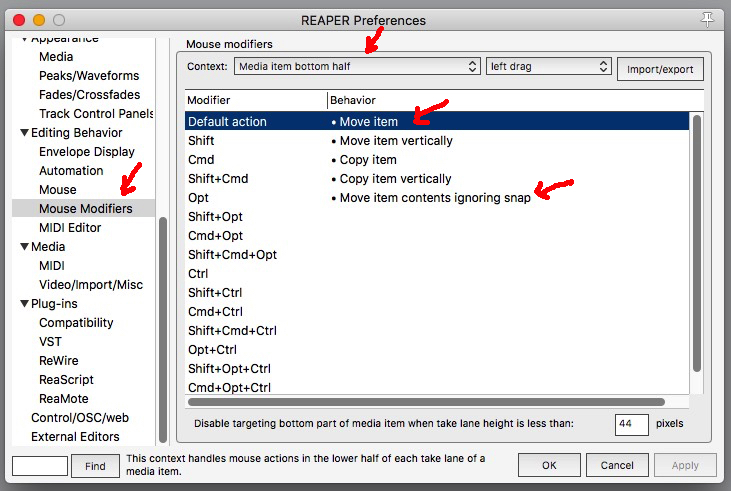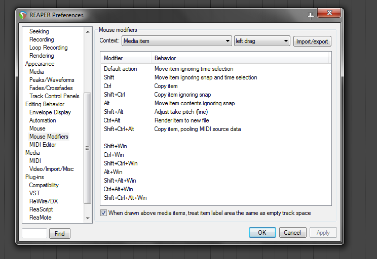 @Darek, а вы нажимаете что-то или просто водите мышкой? Зайдите в mouse modifiers и Media item left click / left drag и сделайте скриншоты. После перезапуска программы это остаётся?