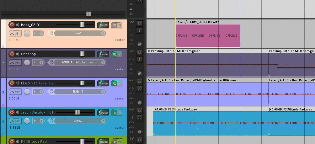 Приветствую всех обитателей ветки! Я только пытаюсь разобраться с Рипером, что-то уже усвоил, впереди многое нужно узнать. Но вот возникла такая непонятка по отображению тейков в виде lanes по команде Ctrl+L: выделенный тейк не реагирует, а тейк на другом треке (третий сверху) — реагирует. Это баг, или фича?