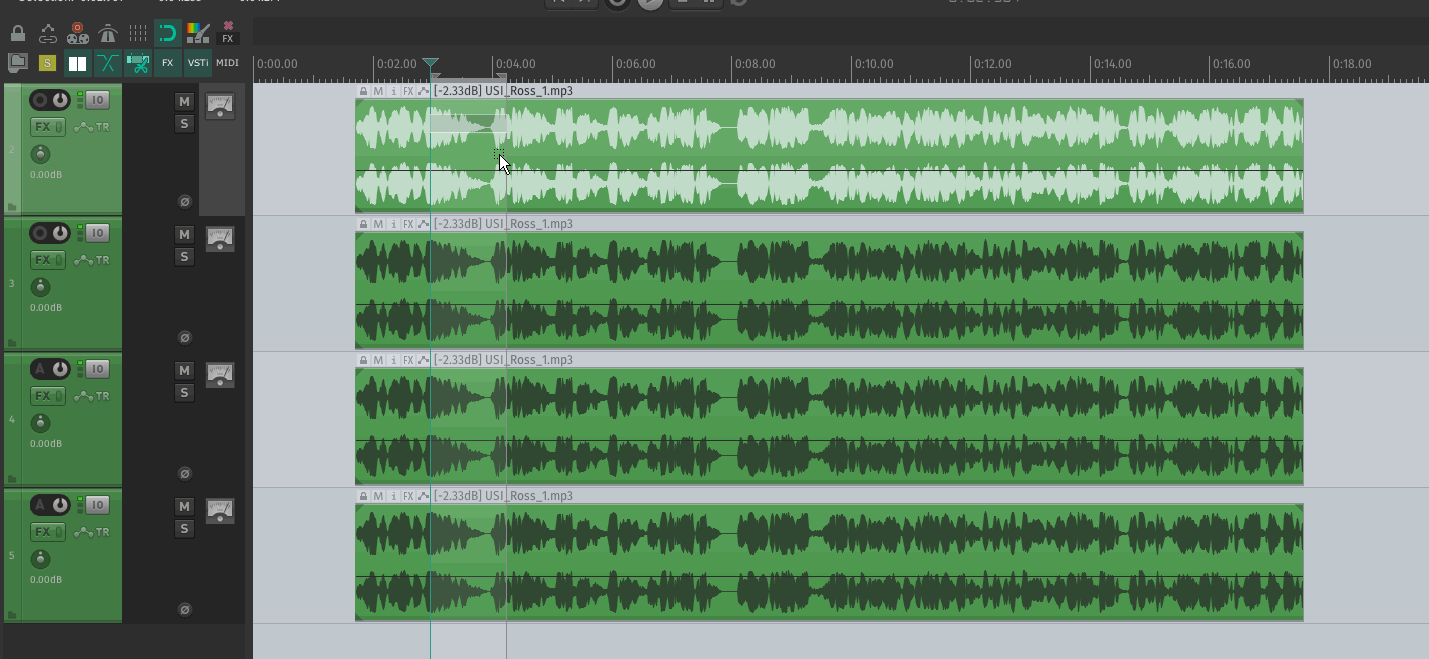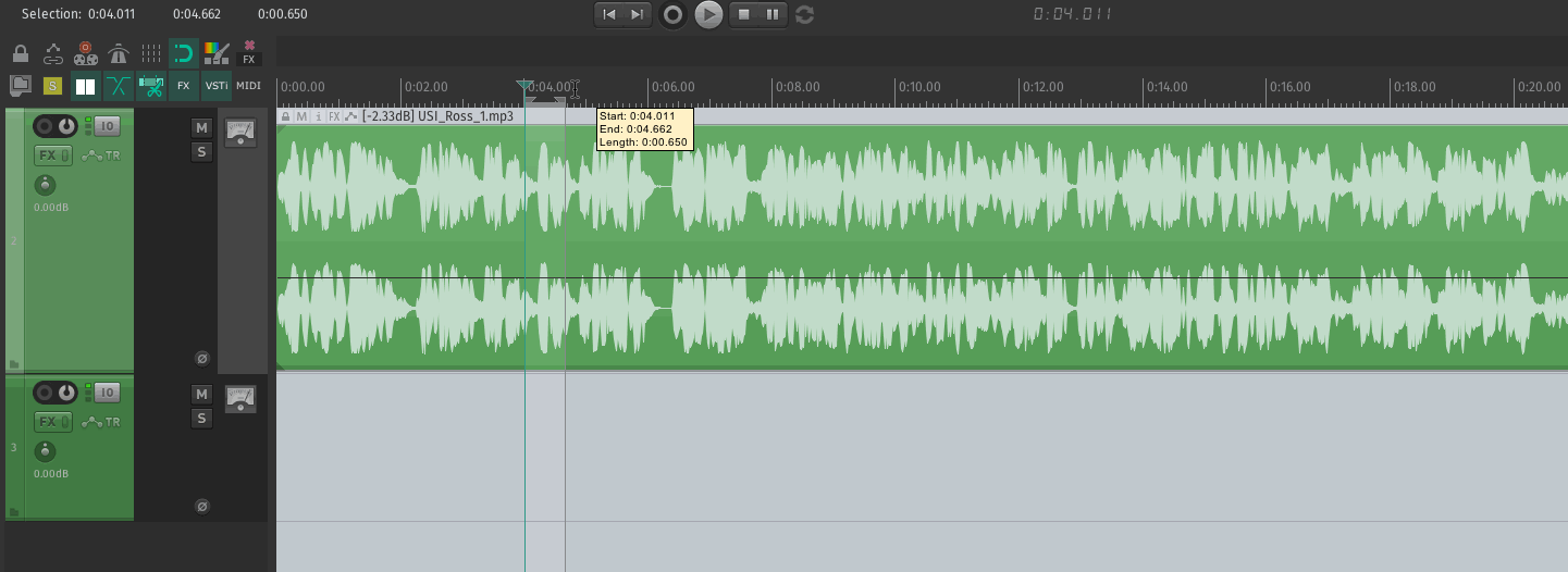 Простите начинающего! Как выделить часть трека? клик мышкой и тянуть - двигается весь трек, двойной клик - открывается окно media item properties. Могу выделить только все дорожки разом. Кто-то спрашивал в 2017 году, был ответ, что пока нельзя, но время вперед идет.