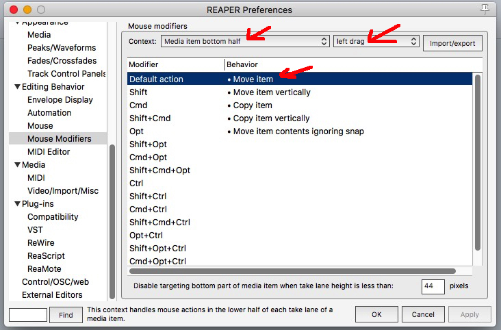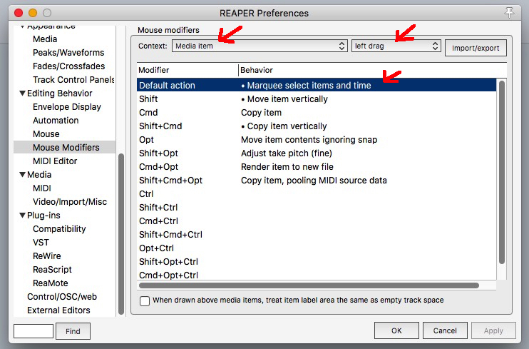 @воронин, Можете вообще настроить как вам нравится. И если что для вырезания/удаление я использую не просто Remove Items, а Edit: Cut items/tracks/envelope points (depending on focus) within time selection