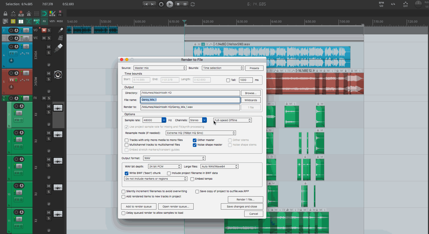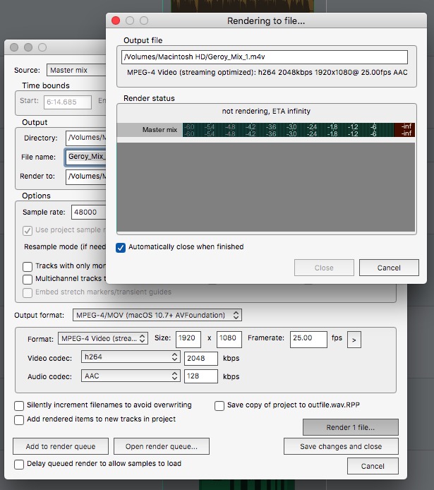 Я делаю звук для видео, при попытке сразу экспортнуть из проекта видео файл Рипер виснет наглухо, перед началом рендера.