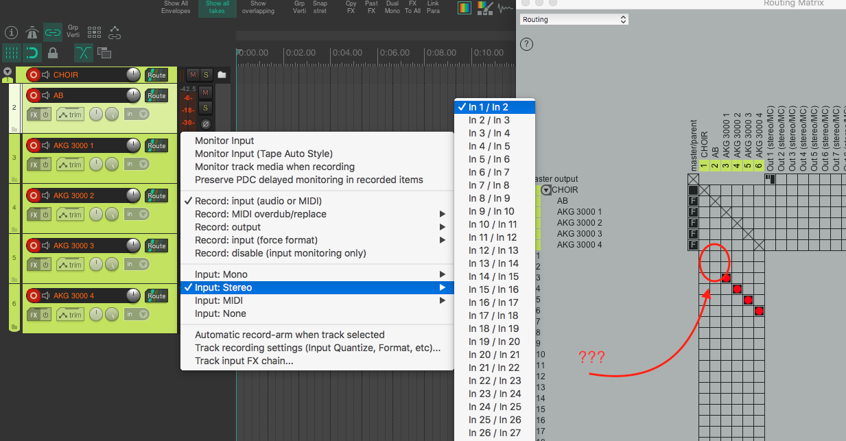 Товарищи, доколе?! Может чего не понимаю... На дорожке выбран стереоинпут, т. е. вход 1 и 2 сразу пишутся в стереофайл, но в Routing Matrix это не отображается! Ахтунг просто какой-то.