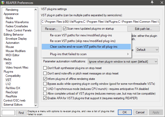 Скан плагинов не помог при помещении dll в папку, рескан последующий тоже не помог.
