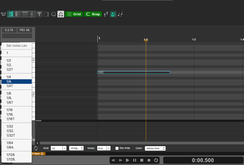 @BRG, Ну или вот эти, если нужен конкретный размер с точкой или триплет или точный, все в экшн листе в разделе Midi: