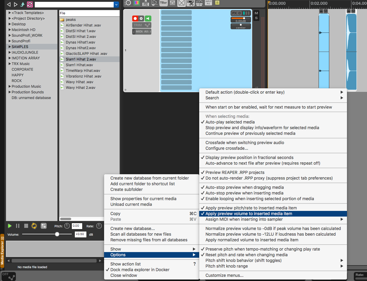 Возможно ли настроить media explorer так, что бы при перетягивании файла на окно аранжировки выставлялся нужный уровень громкости?