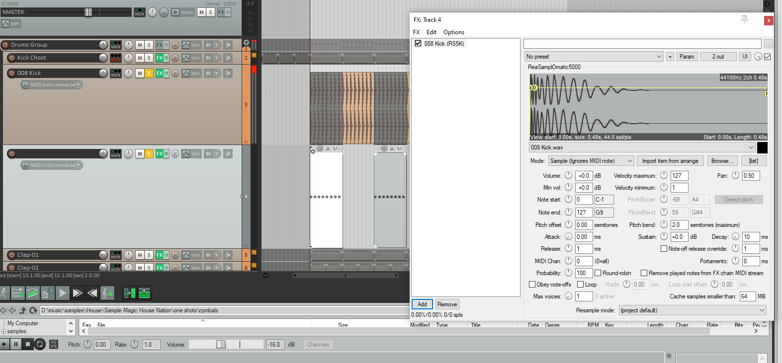 Куда смотреть, чтобы звук сэмпла был одинаковым и на дорожке и в ReaSamplOmatic5000