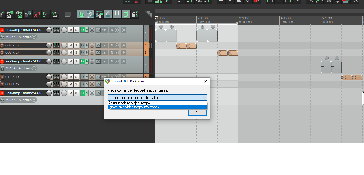 Если закинуть сэмпл бочки прямо на дорожку, то звук с характерным щелчком(атакой), а если закинуть в ReaSamplOmatic5000, то атака не так ярко выражена.