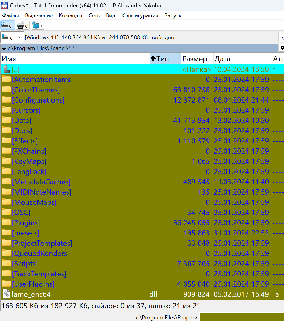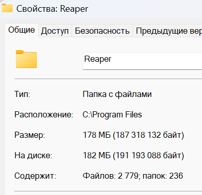 Но опять же зависит от особенностей использования (цели и задачи). У меня еще папки "ProjectTemplates" и "TrackTemplates" довольно объемные. Все равно как полноценная рабочая станция Рипер может быть довольно объемным. Плюс в том, что установочный файл маленький, устанавливается и обновляется быстро.