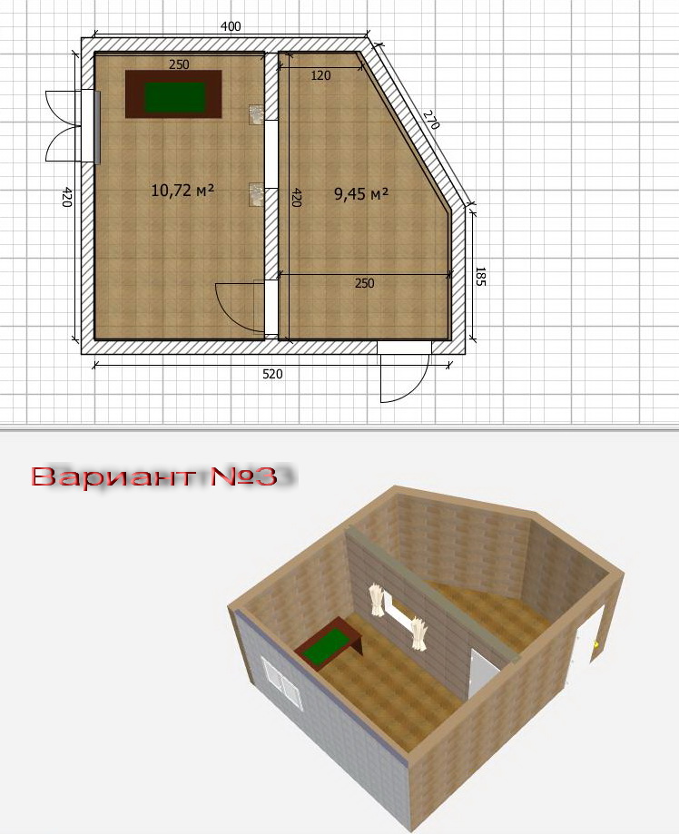 2. Имеется акустический калькулятор для простых форм комнаты. Что делать, если есть еще один угол (широкий) посередине одной длинной стены?