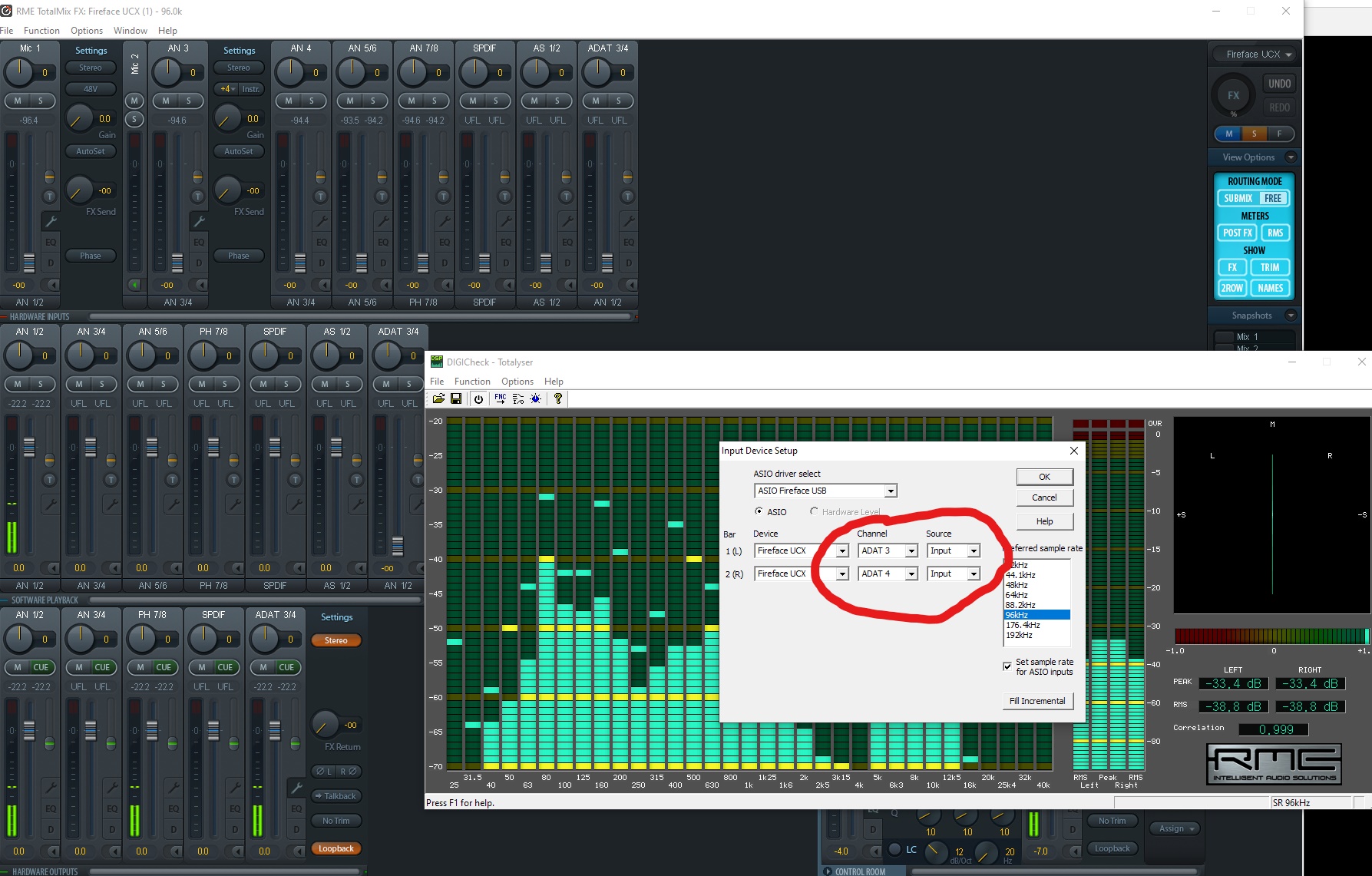 Извиняюсь, но я похоже окончательно запутался с маршрутизацией. Main out назначен на AN 1/2. Звук воспроизводится, но в Digicheck никакой визуальной информации. По логике, в audio device select в выпадающем меню channels я должен выбрать AN 1/2? Но проблема, есть все каналы, кроме этих двух. Помогите разобраться пожалуйста.