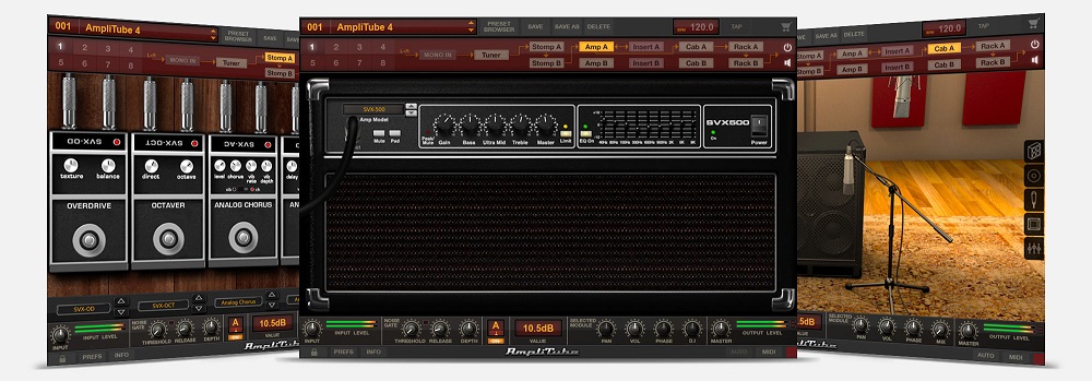 AmpliTube SVX включает 18 моделей, включая четыре усилителя, шесть кабинетов и восемь педалей.