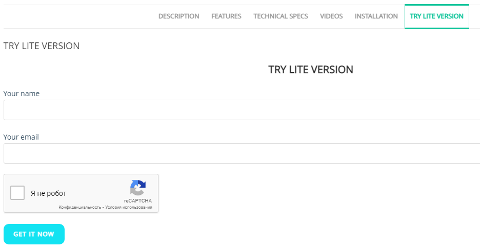Для скачивания выбрать TRY LITE VERSION и ввести данные:
