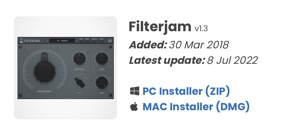 Version 1.3 of FilterJam includes Universal 2 Binary and CLAP support.