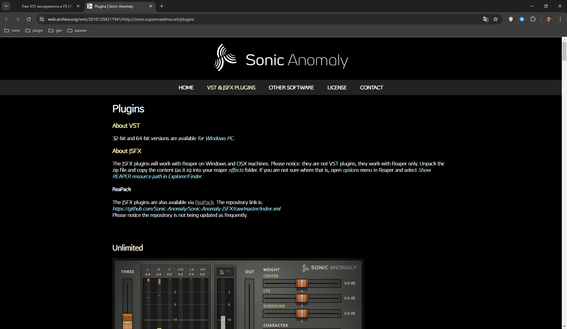 пакет из плагинов - компрессор, гейт, эквалайзеры - графический и динамический, делей,