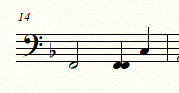 Как видно, в данном примере "пока" что всё нормально. Но если поменять ноту си на ми большой октавы, то в моём случае добавочной линейки не будет (Plug-ins — Note, Beam, and Rest Ediging — Ledger Lines (hide)).