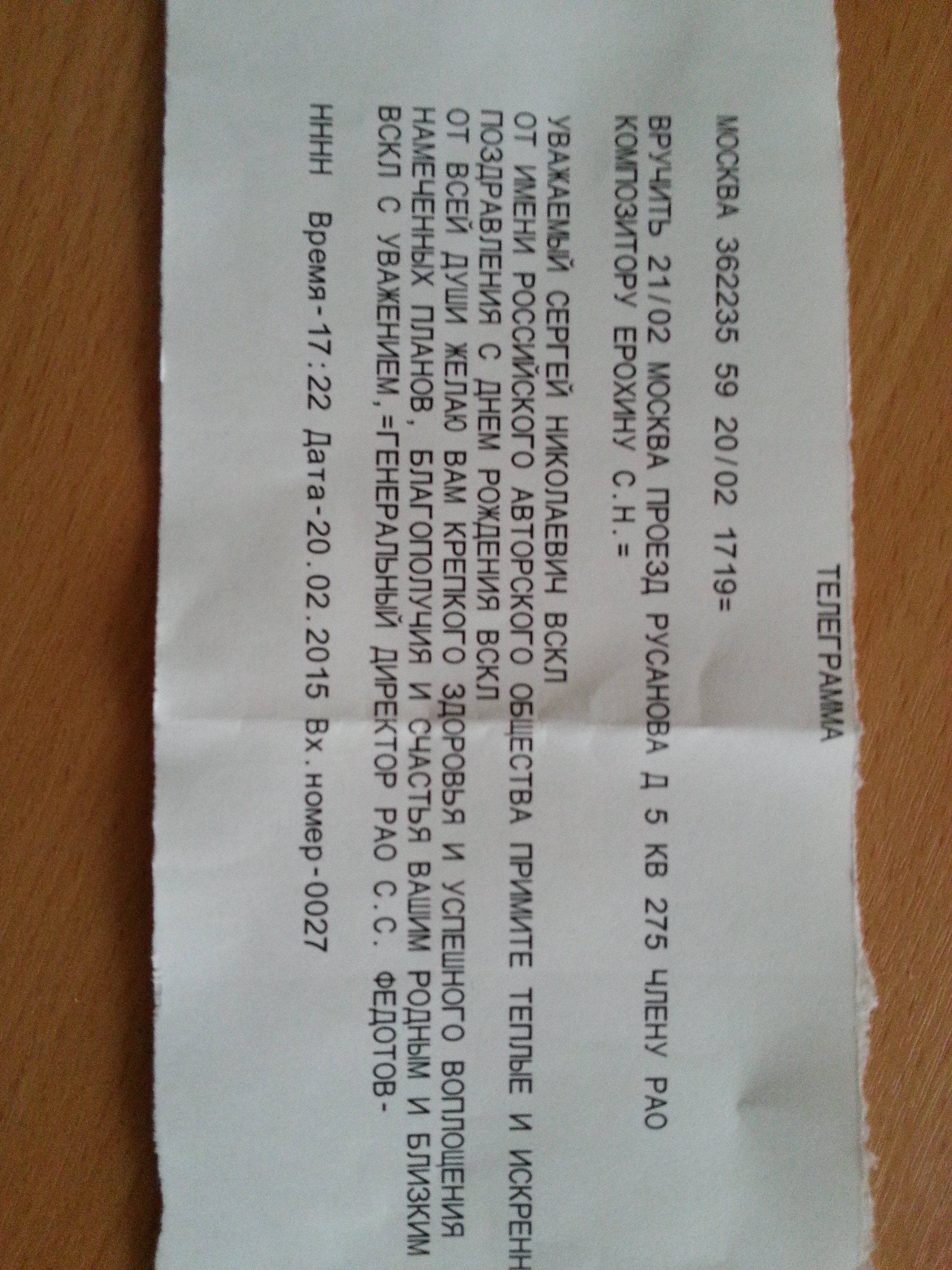 PS РАО просто жжот напалмом. ))) Сейчас пришёл почтальон ( !!! ) и вручил срочную телеграмму !