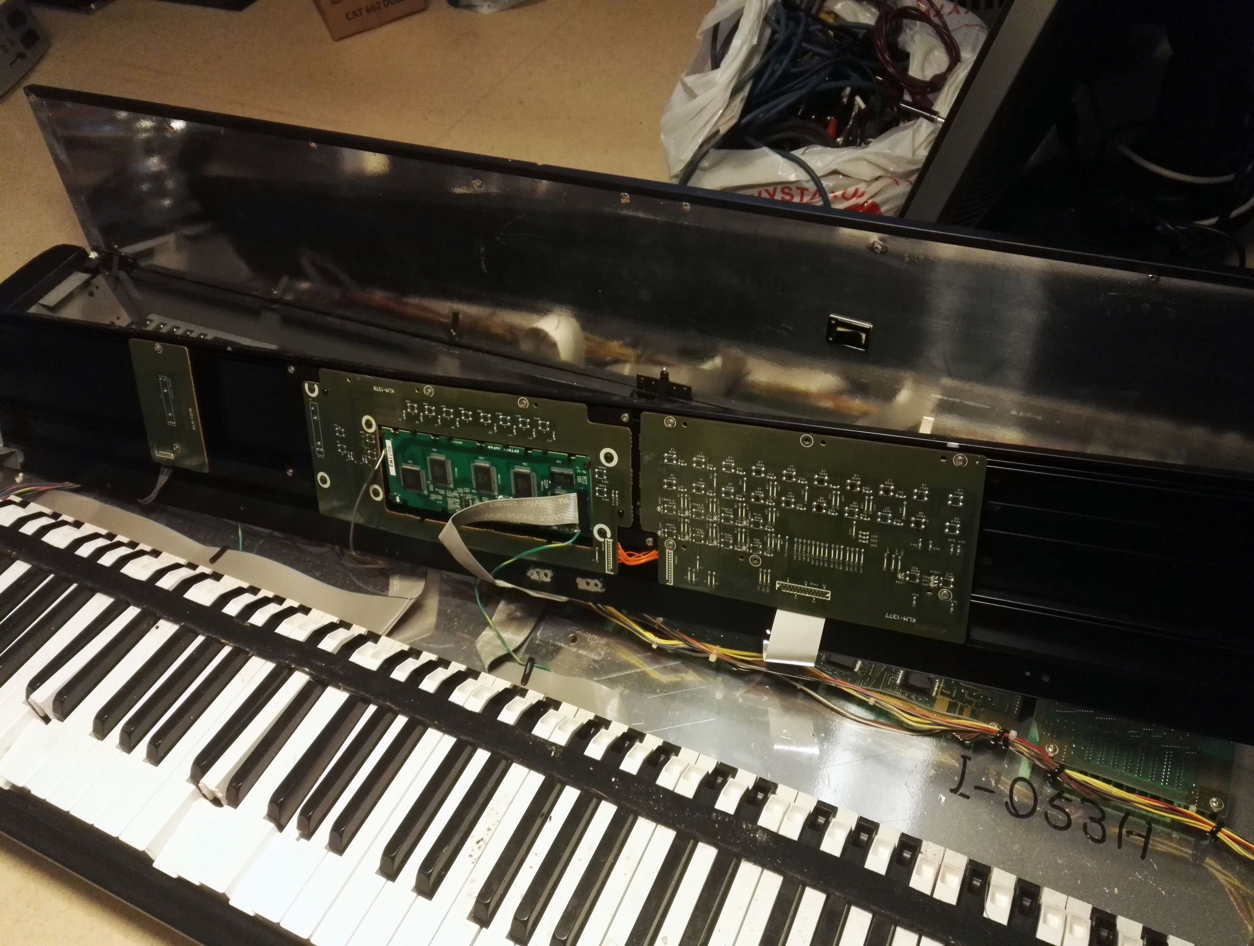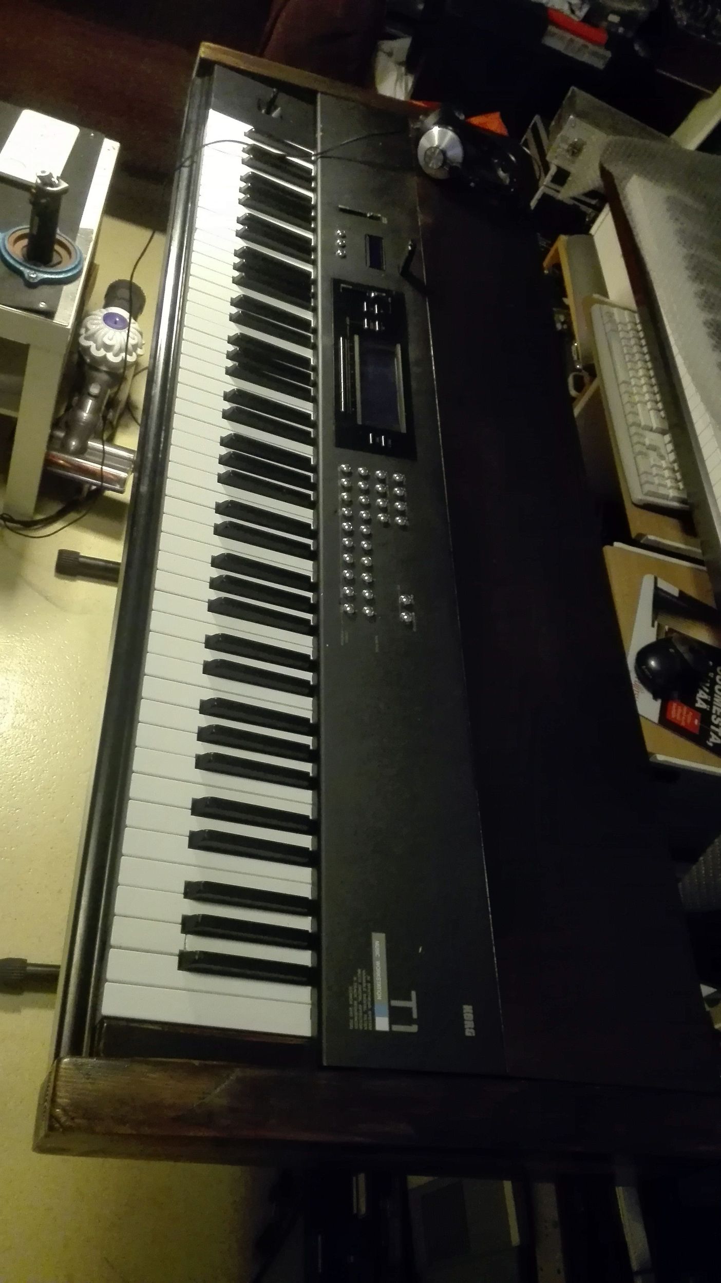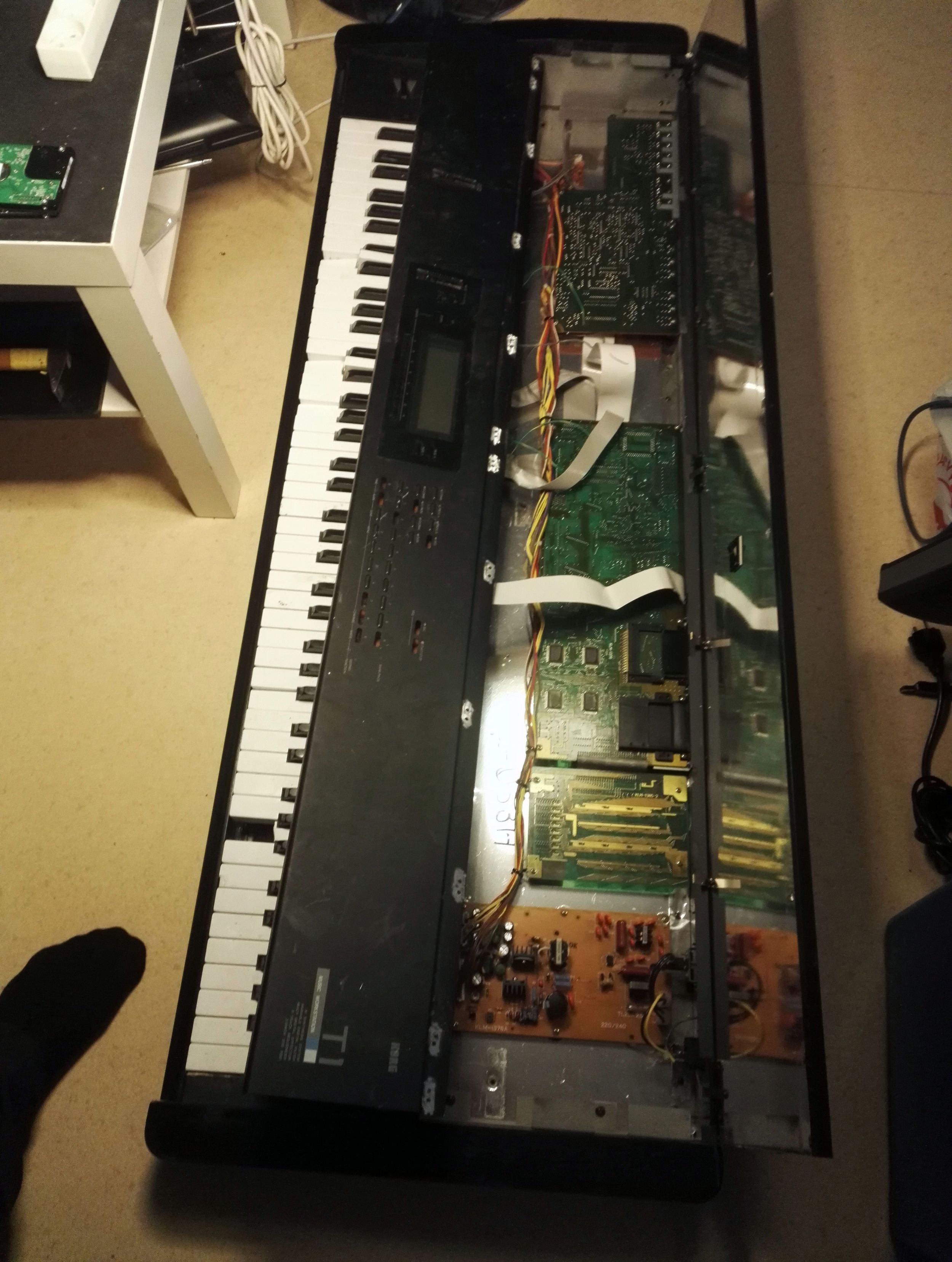 Дисплей заменил. Кнопки купил у китайцев металлические. Расточил старые отверстия и установил новые кнопки. Дыры, по краям ( только у Т1 из Т серии кнопки продолговатые, а не круглые) залил эпоксидной смолой с черным наполнителем. В передней панеле расточил отверстия под дисплей и кнопки, и установил Gotek флоппи эмулятор, прошитый как HxC. Все собрал. Очень нравиться! Клава одна из лучших Yamaha. Почти как на DX7IID (у меня есть), но взвешенная (с грузиком) и сама конструкция немного другая. Да и звуки М1 до сих пор на слуху. Плюс можно грузить DSS дискеты.