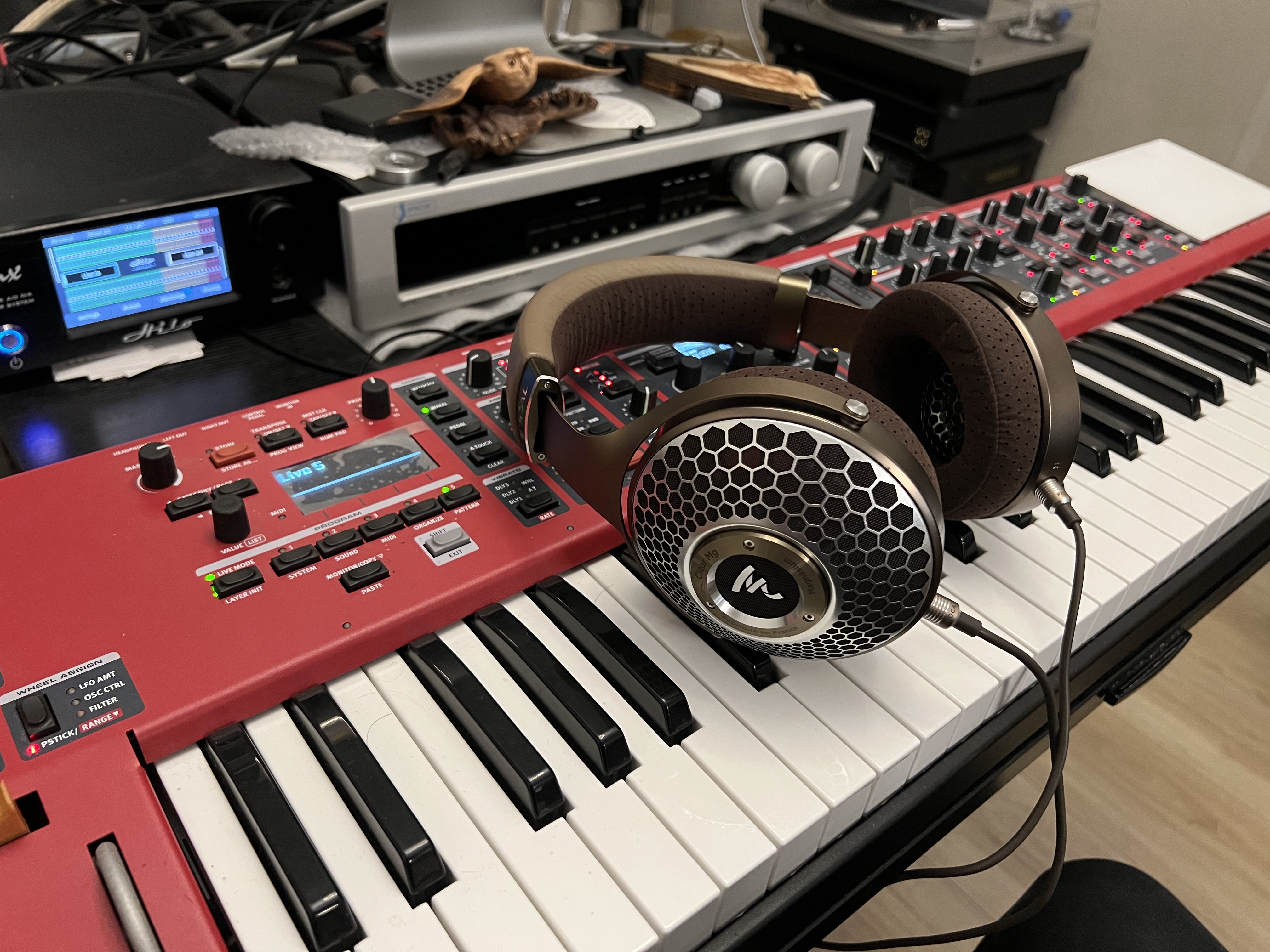 Focal clear MG открытые наушники. Они настоящий State of Art как внешне, так и по звуку. По звуку это такие Sennheiser HD650 на максималках. Для открытых ушей у них неплохая изоляция от внешних звуков и великолепный бас. Детальность запредельная как по транзиентам так и тембрально. Тембральное разрешение очень очень высокое. Они не для сведения звука- они очень прощающие качество исходника и да, приукрашивают. Но для работы с синтезаторами они мне прям очень зашли.