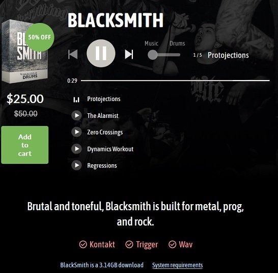 Великолепная библиотека ударных Analogue Drums Blacksmith до конца июля 25$ вместо 50$