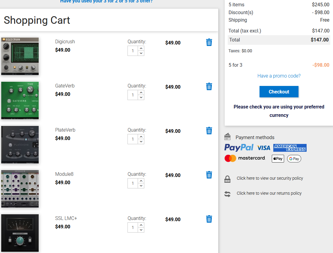 Видимо тут тоже не продумали, ведь три плагина стоят 49+99+99 по отдельности... -247$
