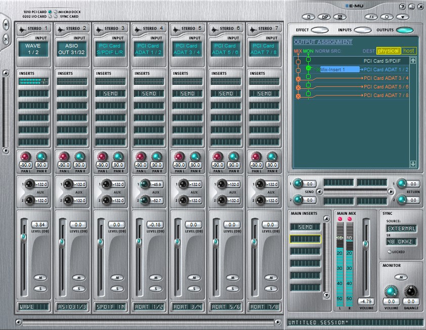 Затем на втором компе тоже с звуковой картой E-MU Добавил Strip adat1/2 в микшере и тут же Peak Meter.