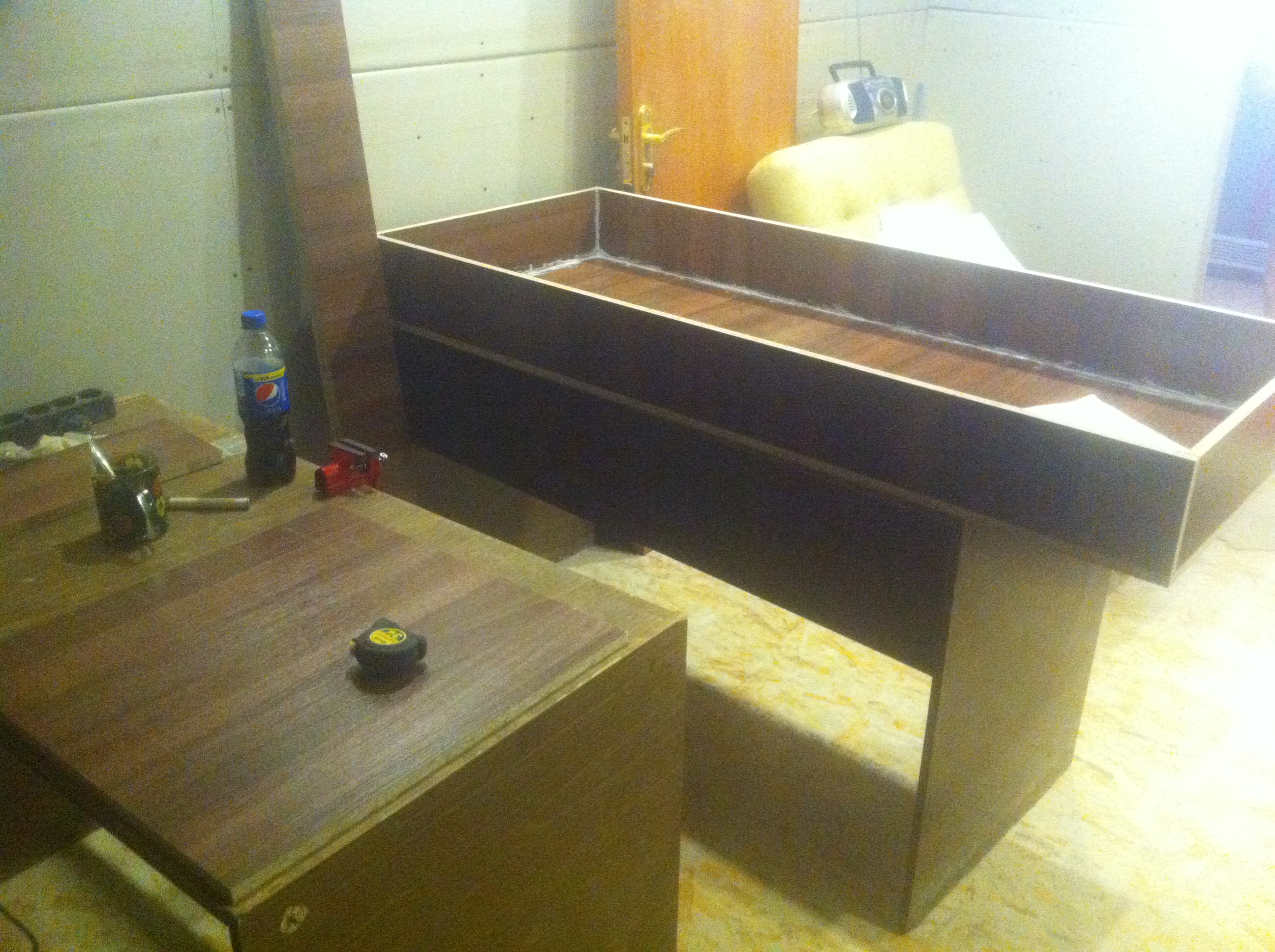 - рабочее место будет расположено так, что либо рабочий стол будет сбоку от входной двери и не даст ей полностью открываться (не комфортный вход в аппаратную), либо если слегка весь рабочий треугольник сдвинуть глубже (если это не повлияет на звук) - дверь будет точно сбоку от звукорежиссёра (наверное не в лучшую сторону по звуку повлияет на средних?! В прочем можно по средним частотам дверь тем же акустическим поролоном толстым обклеить, как вариант)