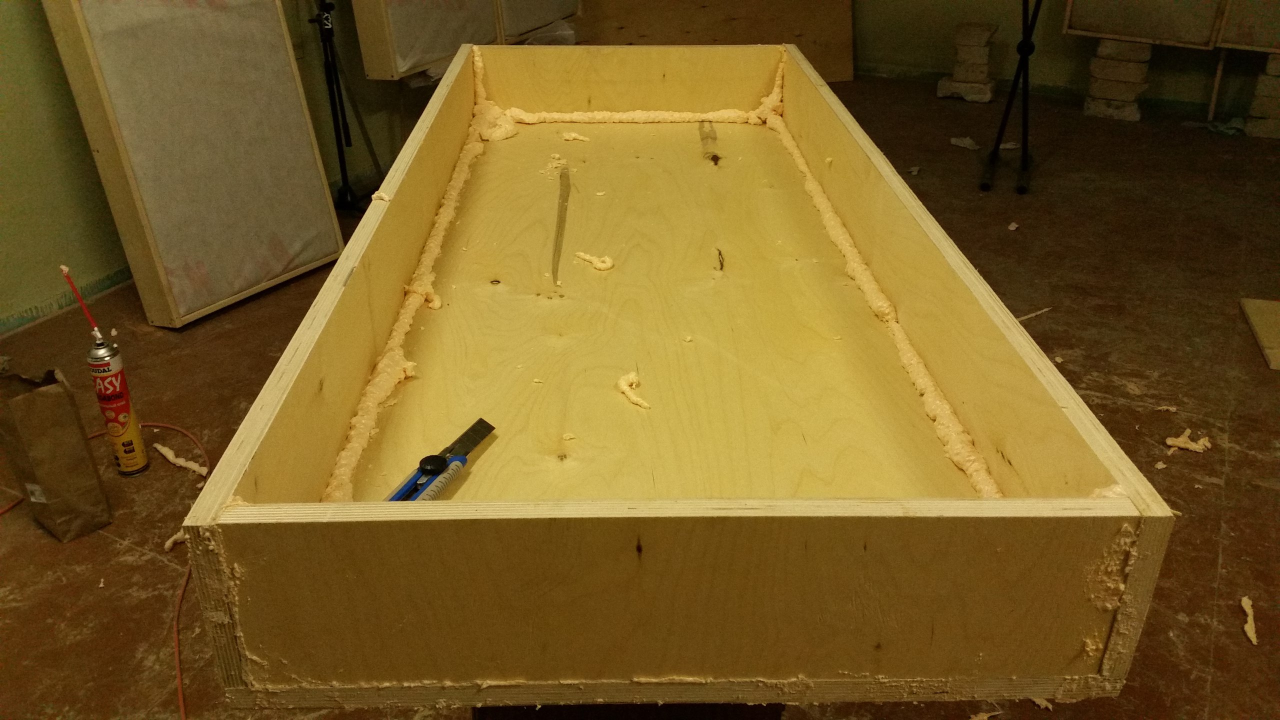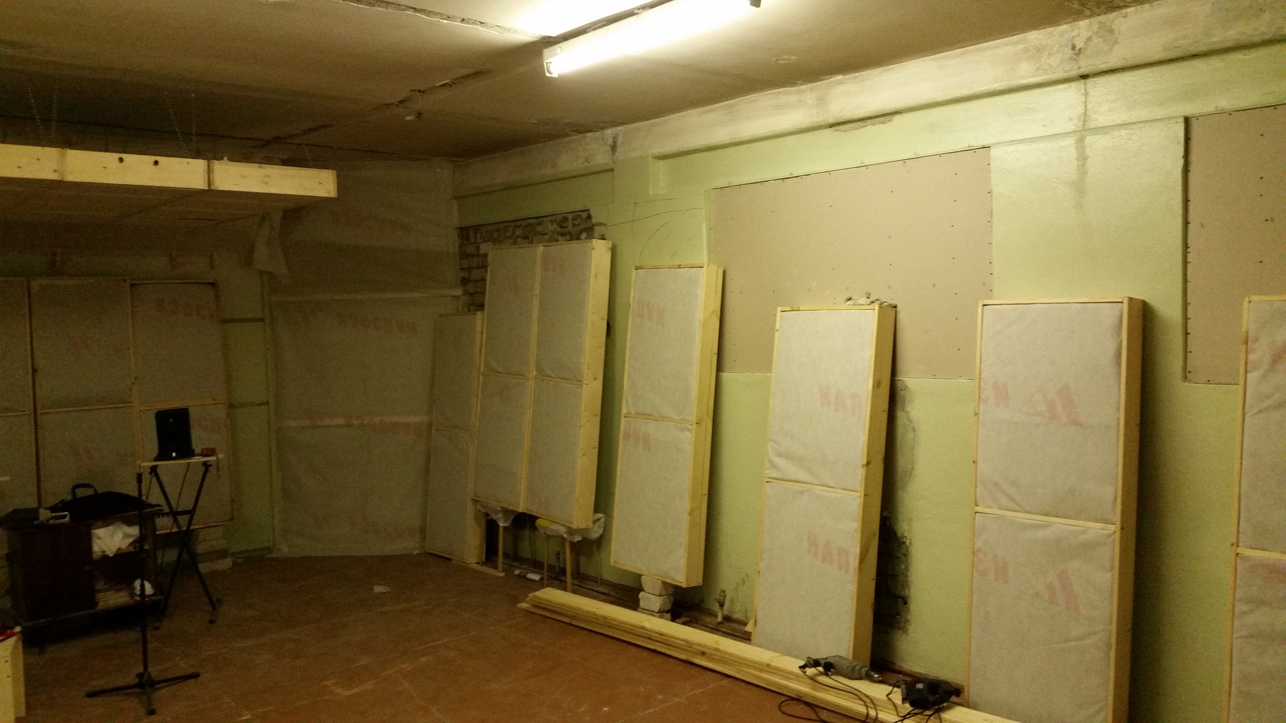 После изготовления НКЧП были установлены широкополосные поглотители (ШПП) по всему периметру комнаты как показано на фото. НКЧП остался стоять на месте, он стоит у фронтальной стены на полу сразу за ШПП.