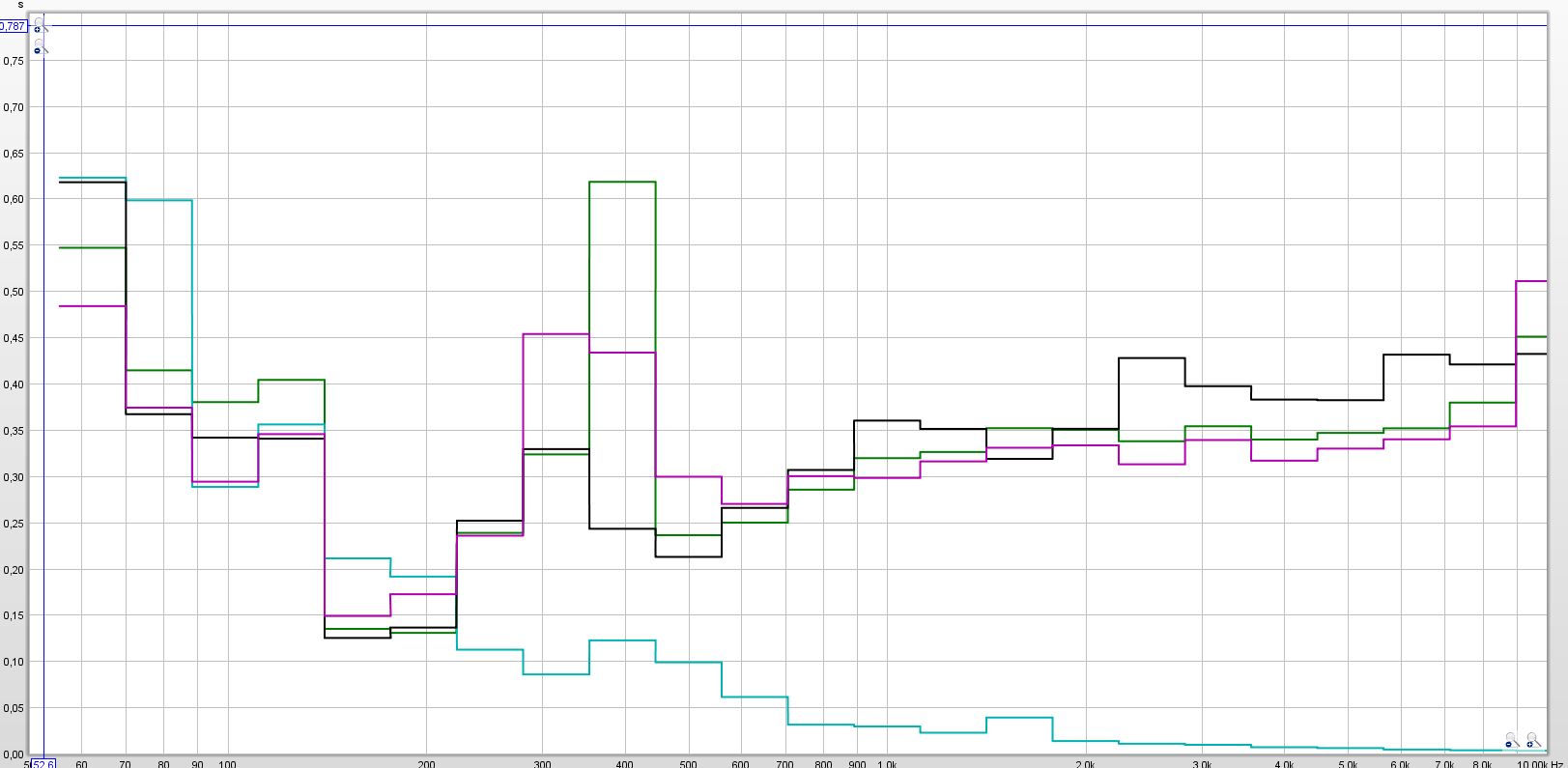 Конечно видно что время реверберации уменьшилось. Исходя из того что я слышу в точке прослушивания - звук стал менее открытым, более мутным каким то... но почему???