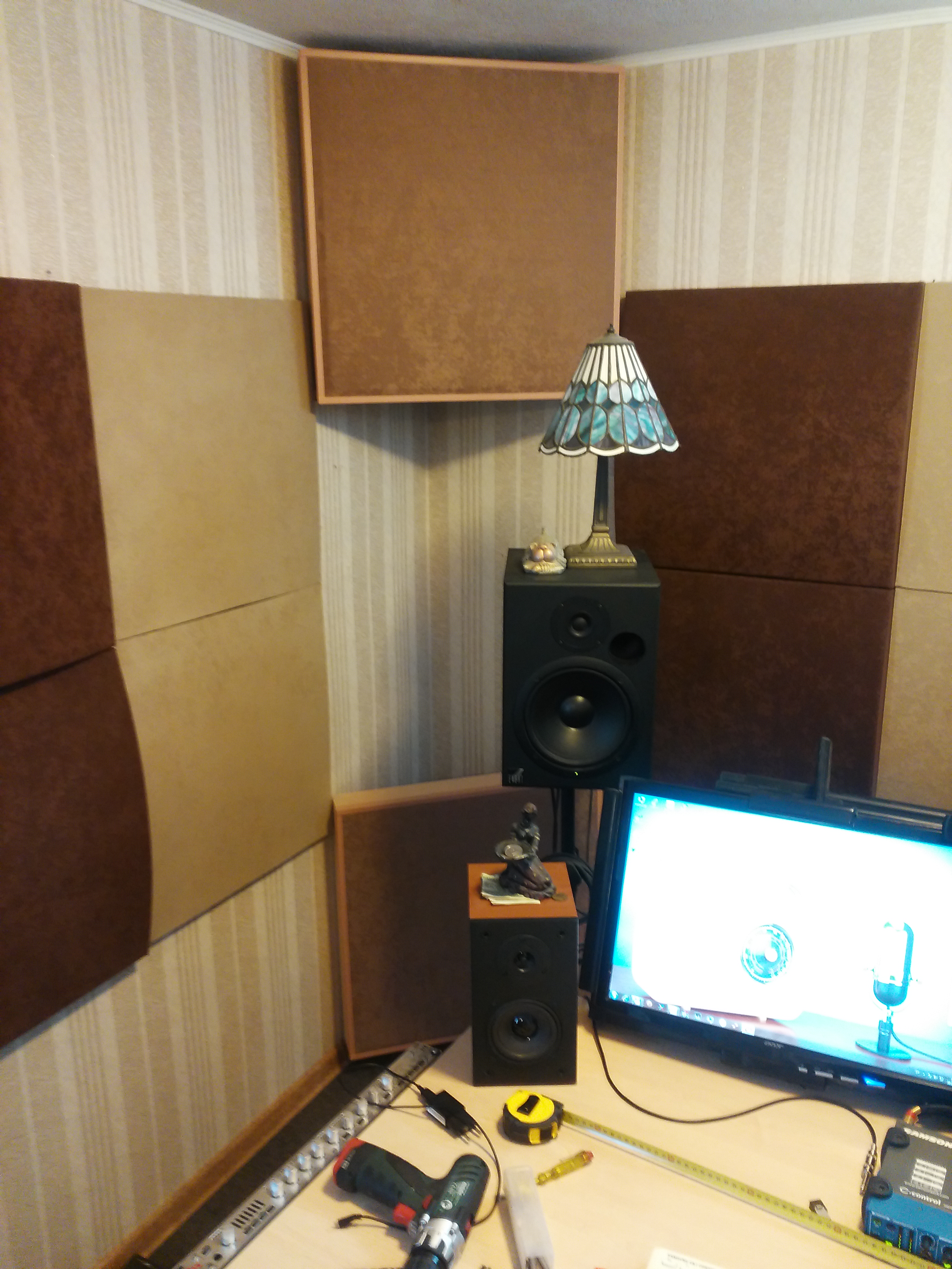 НЧ волна распространяется сферически, учитывайте это. Так что даже 5 сантиметров минваты ничтожно, но поглащает.) Представьте путь волны. Плюс, в панельном можно нагородить, например сендвич с мембраной.о каких басовых ловушках мы можем говорить при использовании панельных поглотителей