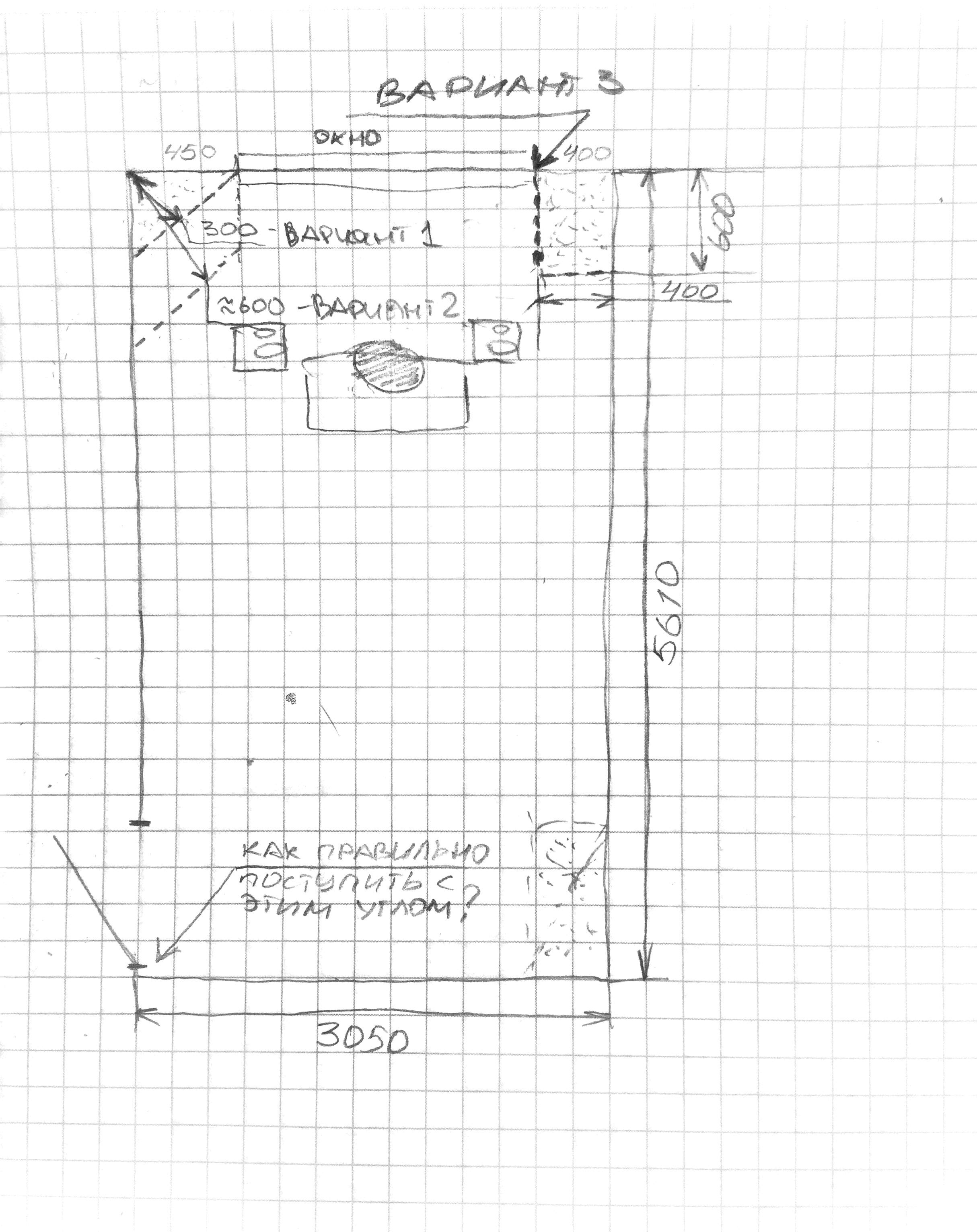 - комната 3050х5600 высота 2500. Панельный дом