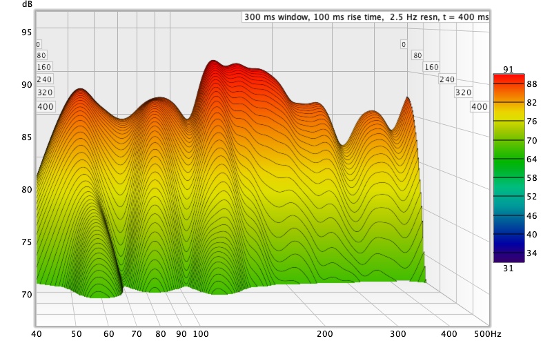 Знакомая история. Горб в районе 130 - это из-за моды между полом и потолком. Есть смысл закрепить одну панель как-то под потолком над рабочим местом.