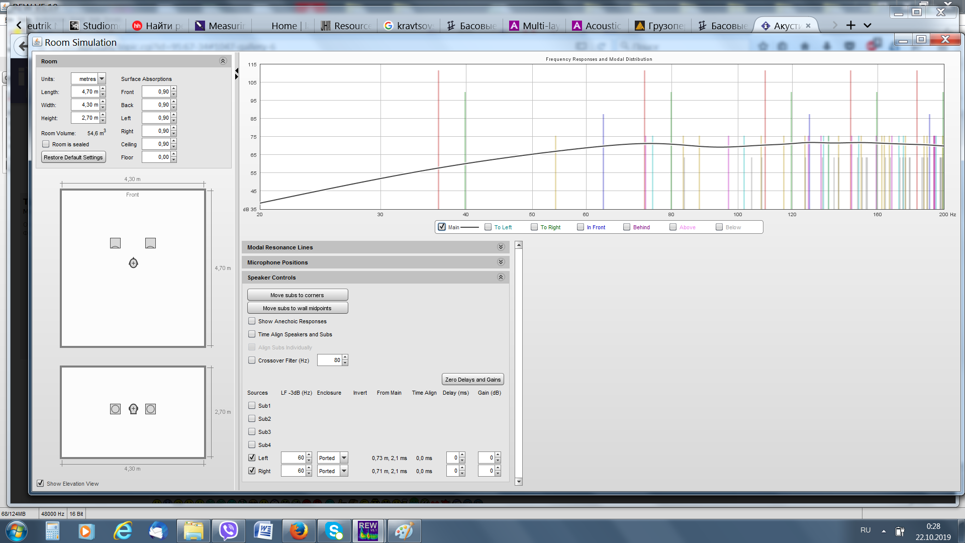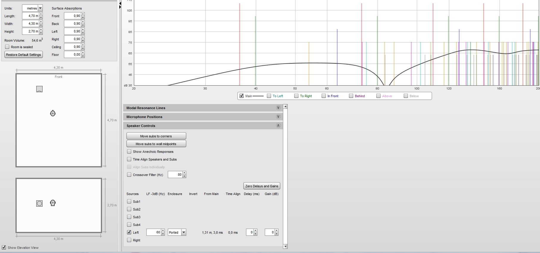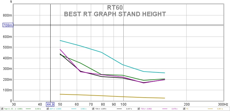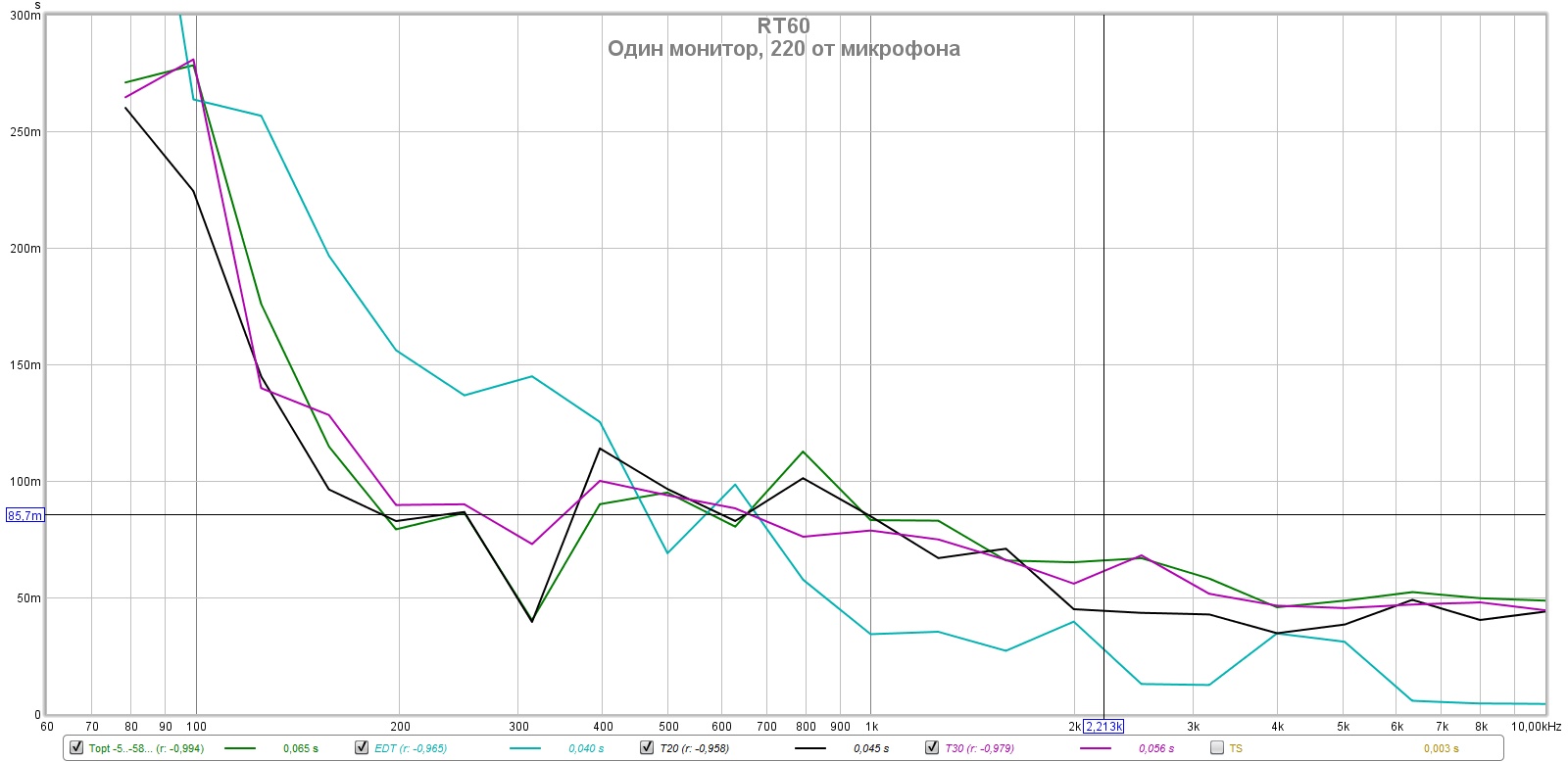 Допустим, от саба в углу идеальный по RT отклик на уровне роста (ну не до стульчиков мне при сверке на слух) получился неплохим даже по АЧХ. Не считая того, что это по факту ноль на тагненциалке, и энергетика 40-50 Гц там провалилась. То есть для РАБОТЫ это не решение.