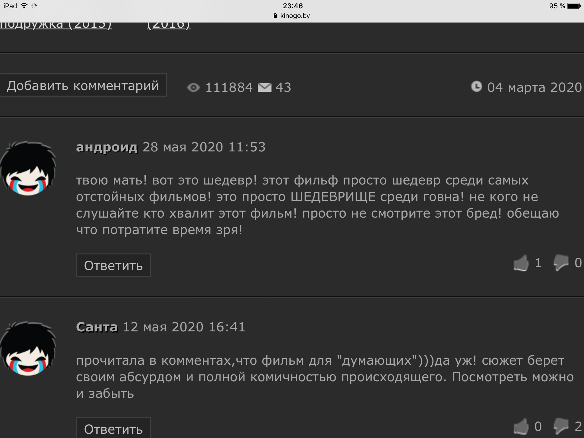 @Zerocool так Киногоу, вроде там мног кто смотрит. Но мало кто отзывы пишет, а если и пишет, то значит не удержался...))