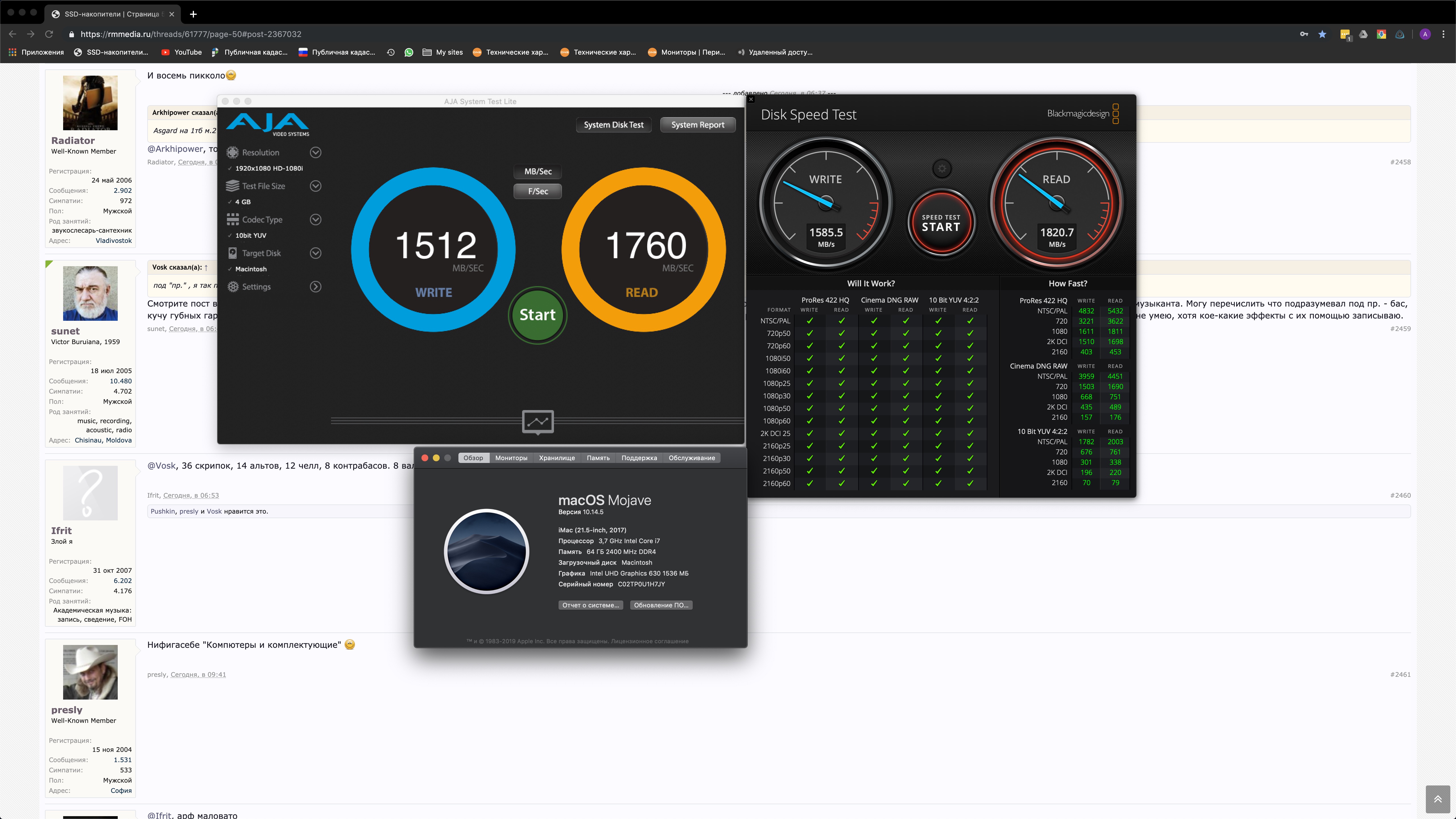 @basЫl, сод стоит в хакинтоше, утилит в маке для измерения скорости кроме той которая выше не помню, если скопировать файлы 5гб и больше скорость показывает примерно типа "5 секунд". Ссд новый, контроллер понятия не имею какой (z370m_d3h http://www.gigabyte.ru/products/page/mb/z370m_d3hrev_10#kf ), на материнке два М.2 температура 35. Получается нет методы для проверки...