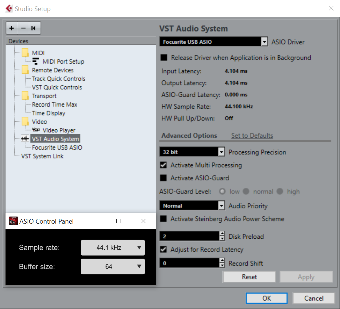 Касаемо задержек (результаты в Cubase Pro 9.5 на 44100)