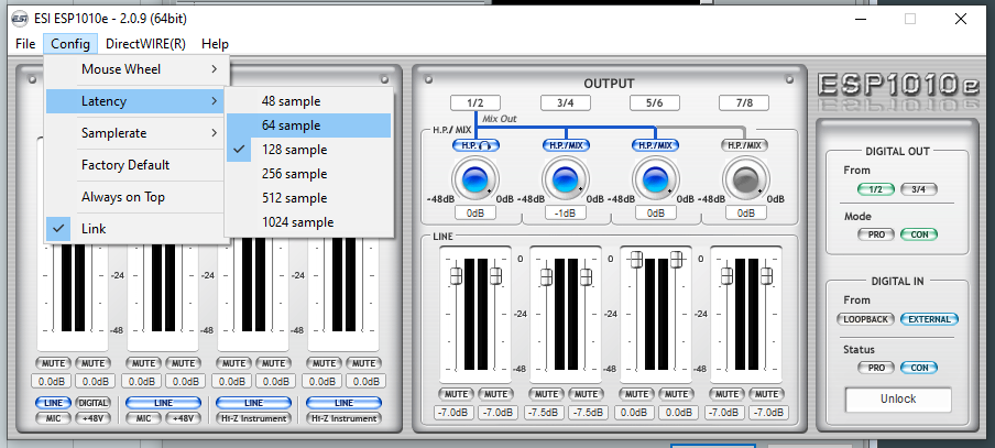 У линксА на минимальном буфере была общая задержка в районе 2х мс. Причём оно не напрягаясь вообще выводило звук даже в подгруженных проектах. Бэйбик так не может, мало того что крехтит в тех же проектах, так ещё и в принципе такие задержки ей не доступны.
