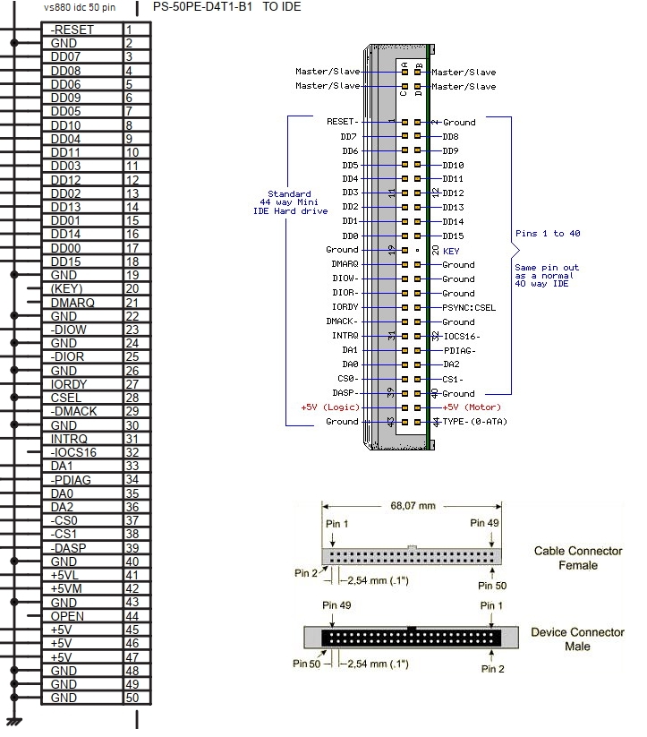 Исходя из сервис мануала, можно увидеть полное соответствие roland 50pin ide интерфейс и 40pin ide интерфейс.