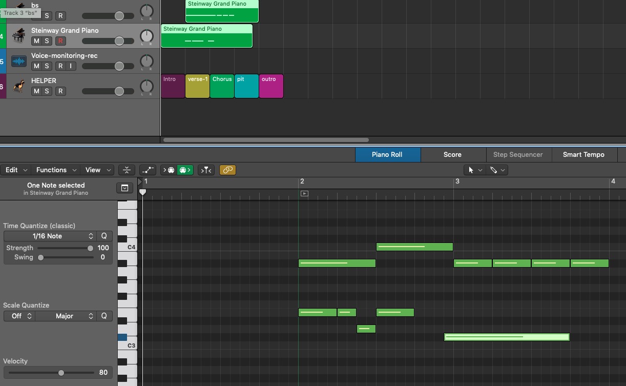 Точно! А чтобы не перевыбирать треки каждый раз, я раньше удерживал альт по ноте из нужного региона, вытягивал её и эту копию вставлял куда нужно. Если партия более весомая предстоит для редактирования, тогда конечно проще выбрать нужный трек, чтобы редактирование нот по умолчанию происходило в нужном регионе.
