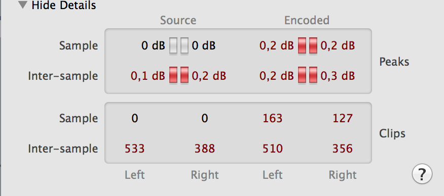 @Anton Vorozhtsov, история такая, там есть типа два индикатора - для актуального сигнала и для сигнала после конвертации в lossy формат. Получается, что ISP фаба, лимитлесс и еще некоторых изделий не могут в -0,1 хедрум нормально даже пройти измерение для сигнала без конвертации. Я в любом случае выгоняю в -1 дБ на мастере для тунца, как правило, но просто вот затестил всю эту историю, и получил такой вот результат. (сейчас удивился)