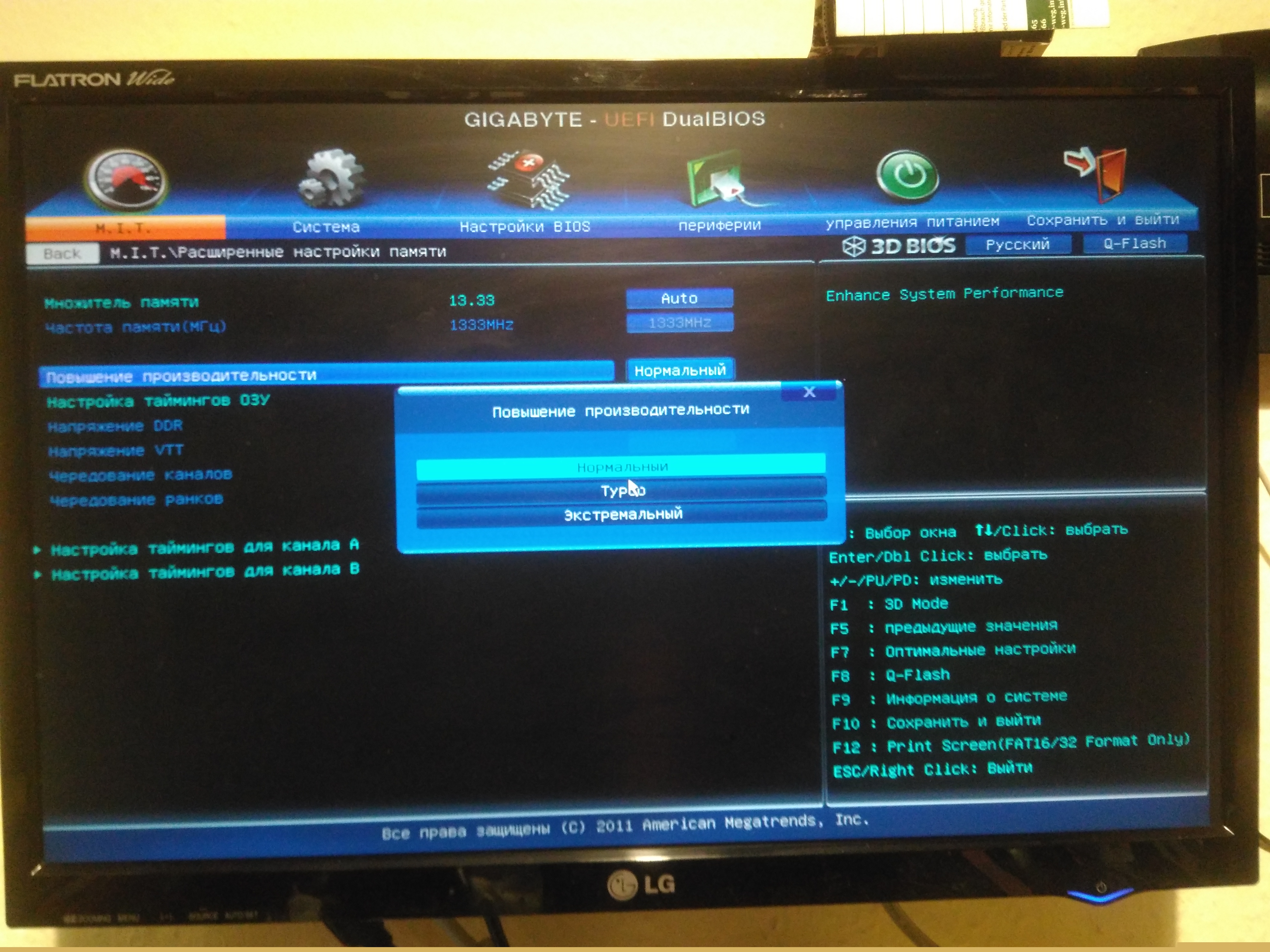 А параметр "Повышение производительности - Экстремальный" не открывает ручных настроек памяти? Если нет, то все-таки лучше поставить "Нормальный", а не "Турбо". Мало ли.