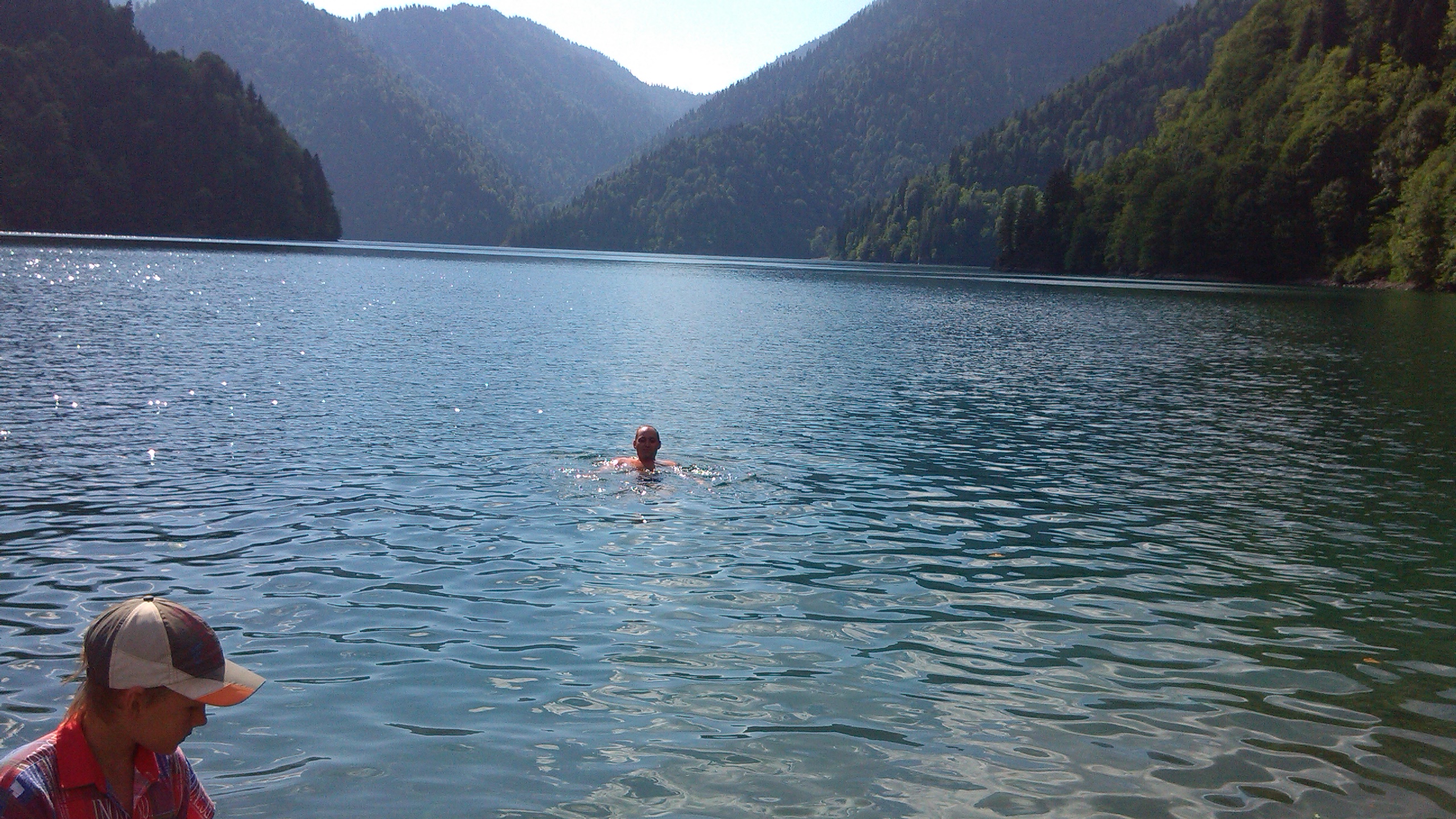 [DOUBLEPOST=1439325616,1439325396][/DOUBLEPOST]озеро Рица рядом с дачей Сталина. температура примерно 10 градусов, мне понра. сын влез в кадр )