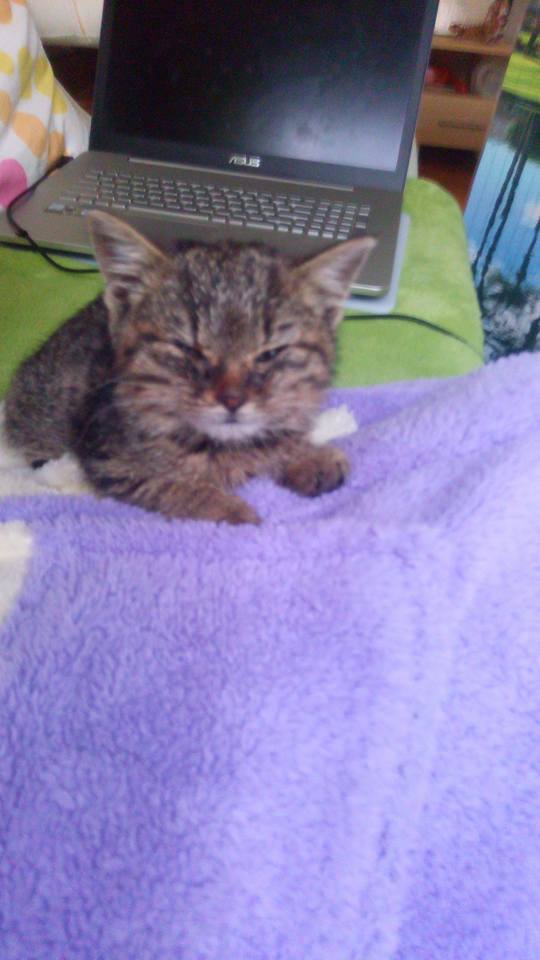 Взяли домой, дрожит, пузо раздуто... наши бывалые котаны чет шибко возбудились по этому поводу. Одно котэ прям ломилось в дом и шипело на мелкого котенка.
