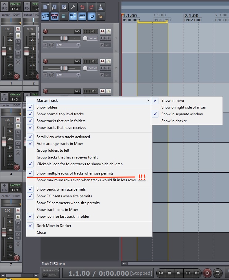Сколько не пробовал менять эти окна в рипере, всё равно мне удобней дефолтный вид с треками сверху, микшером снизу. Так что просто для общего развития узнаю доп. возможности.)
